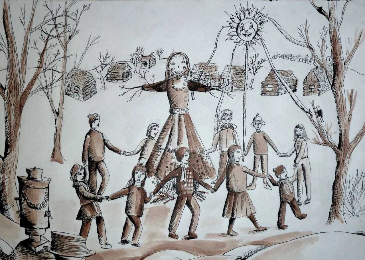 Люблю зимние праздники, некоторые из них в начале января — это, конечно же, Новый год и Рождество, а другой — Масленица, в конце зимы. У меня это торжество ассоциируется с радостью, весельем, плясками, катанием с горок на ватрушках и блинами с самой разной начинкой: вареньем, сгущёнкой, картошкой, мясом. Но ведь всё-таки еда не главное, нужнее всего настроение. Но как его создать? Думаю, один из вариантов — это раскрашивание картинок и раскрасок на тему праздника. Больше всего он понравится детям. Взрослые могут, например, сделать чучело или нарисовать его.
