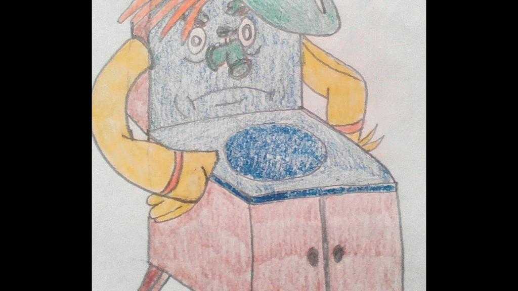- Первым делом необходимо прорисовать стан командира мочалок. Его туловищем вместе с головой служил старинный умывальник с мойкой и спинкой. На листе бумаги с помощью линейки и карандаша нарисуйте квадрат в кубе. Сверху дорисуйте прямоугольник.