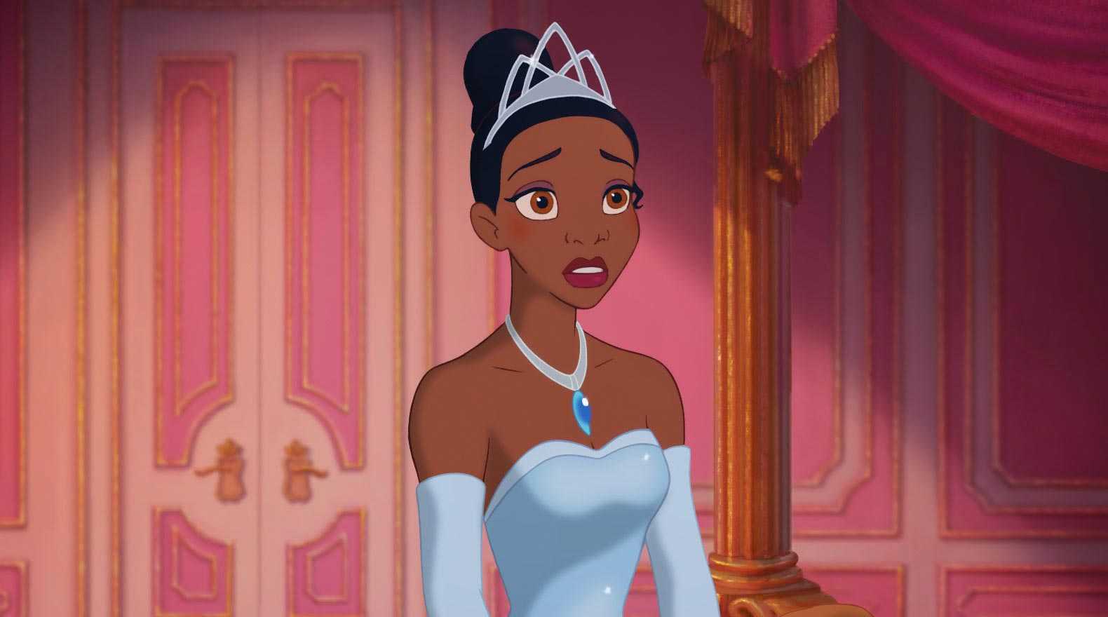 Почти весь мультфильм Тиана пребывает в облике лягушки, а в конце героиня сама справляется со злодеем, в отличие от обычных диснеевских принцесс.