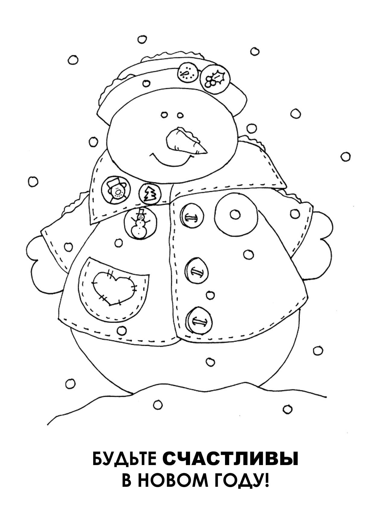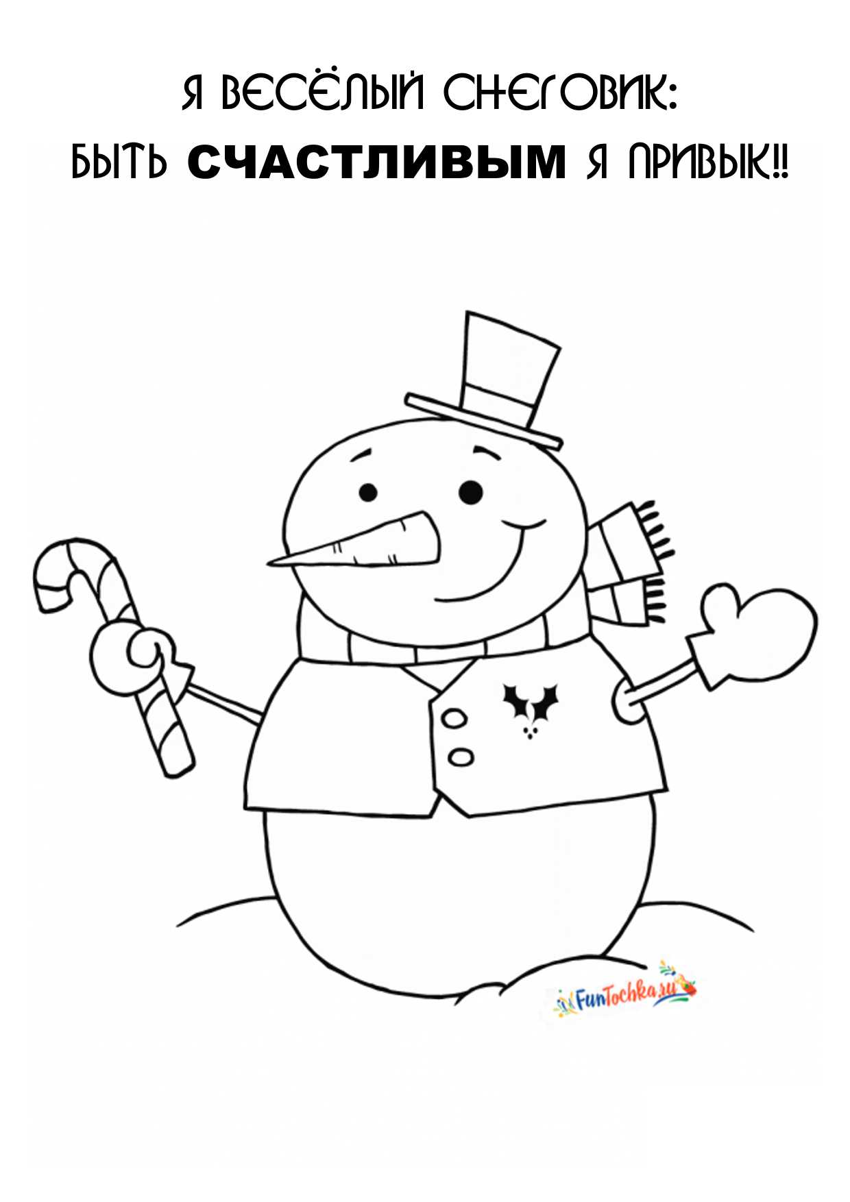 Какая щегольская жилетка у этого персонажа. Распечатайте зимние новогодние раскраски со снеговиками для радости и модных акцентов!