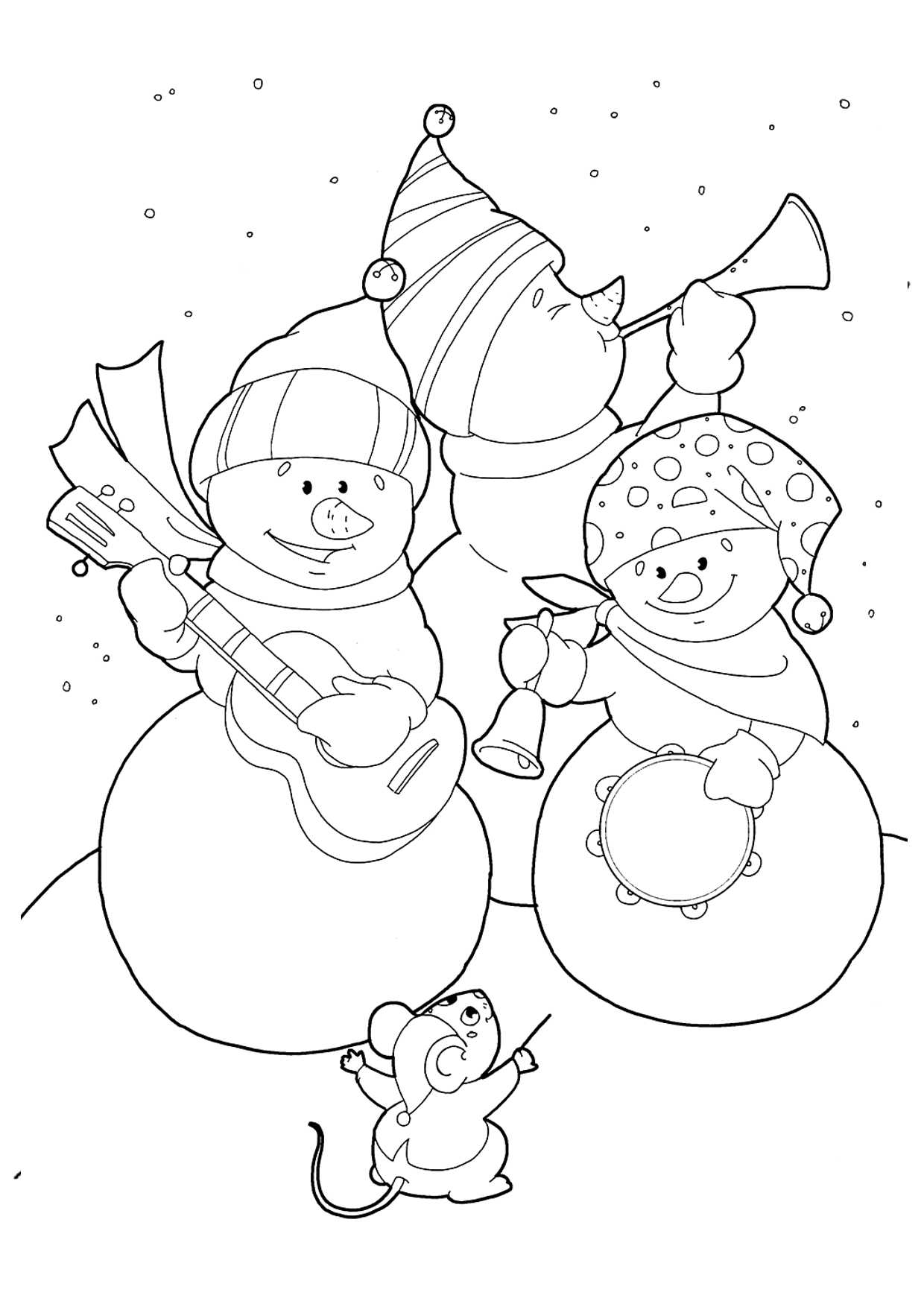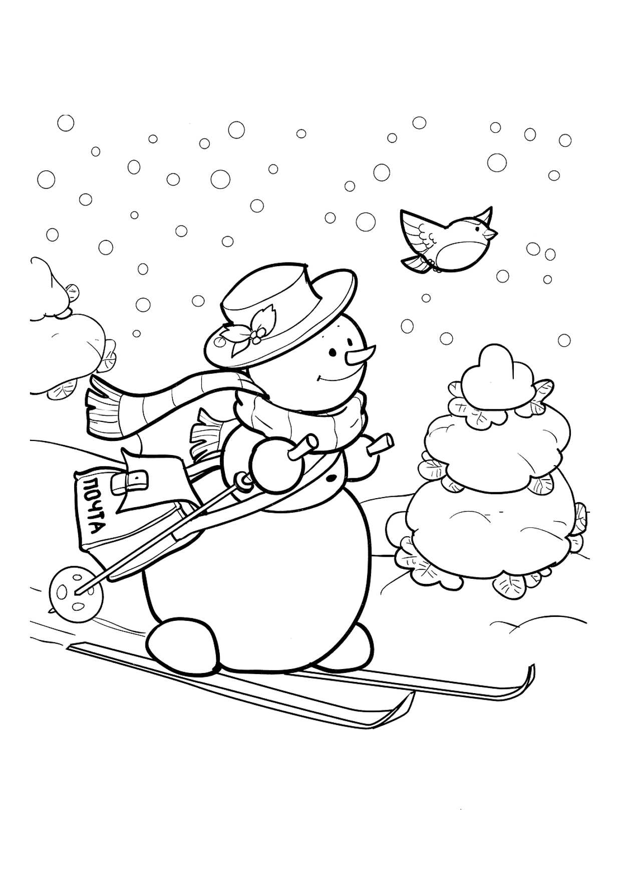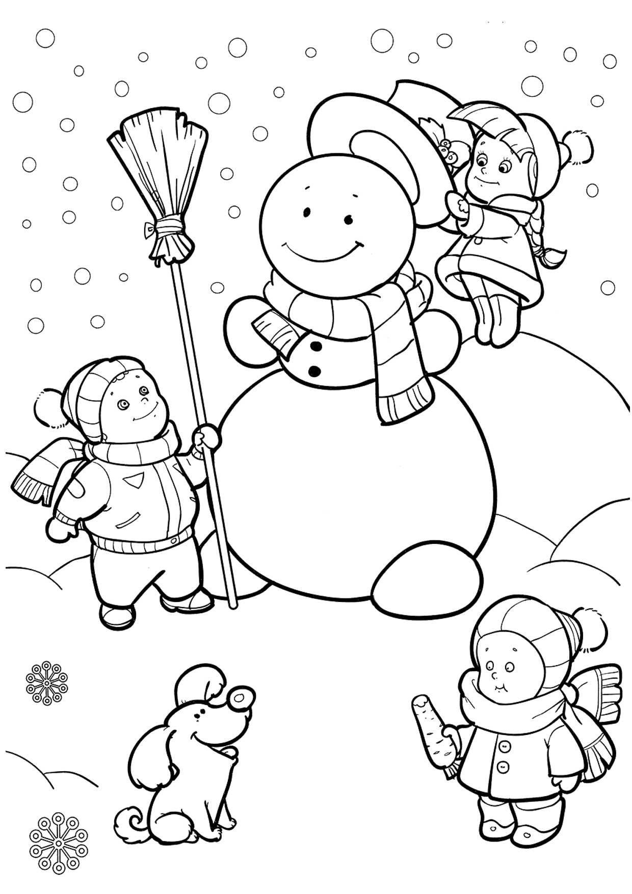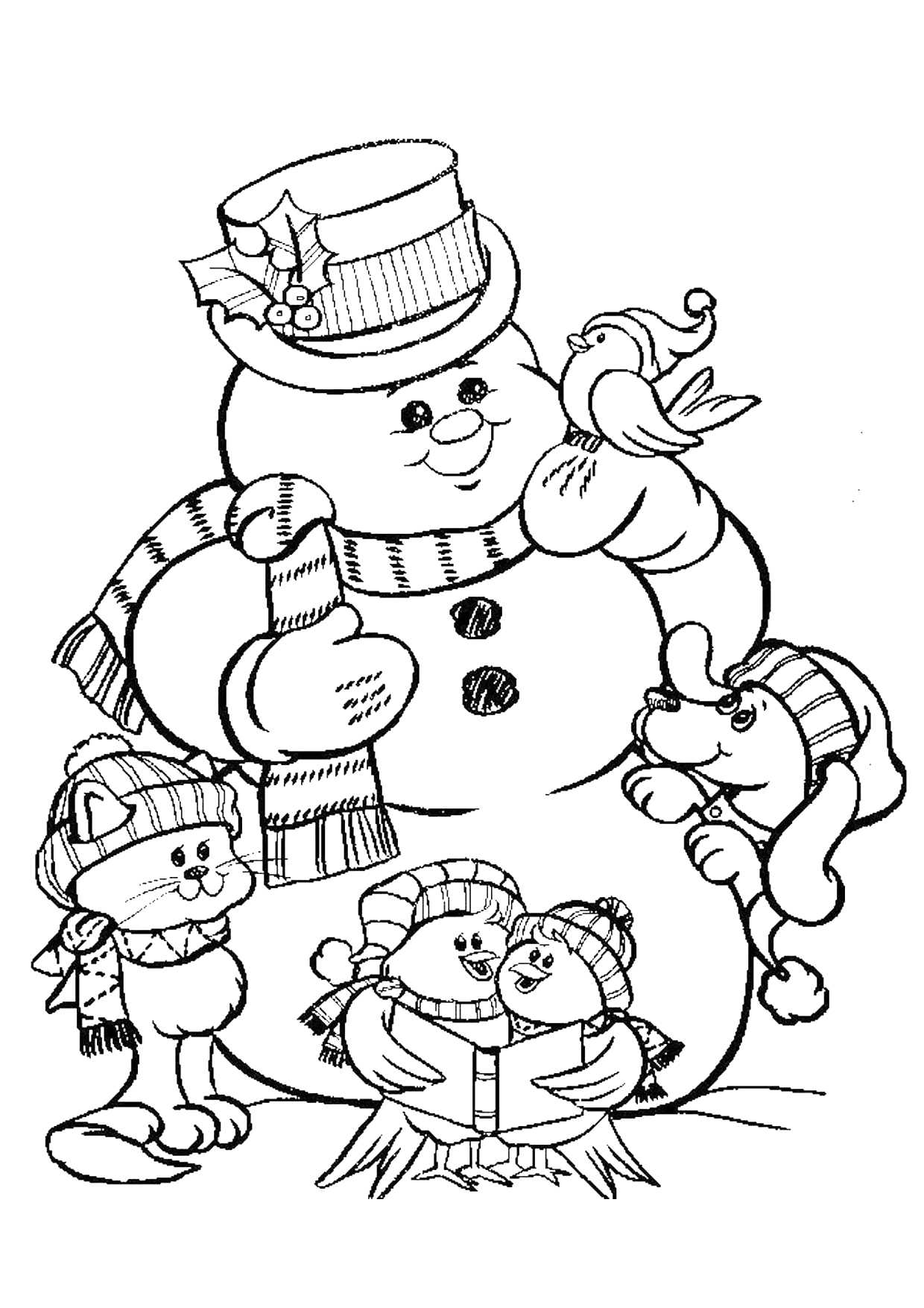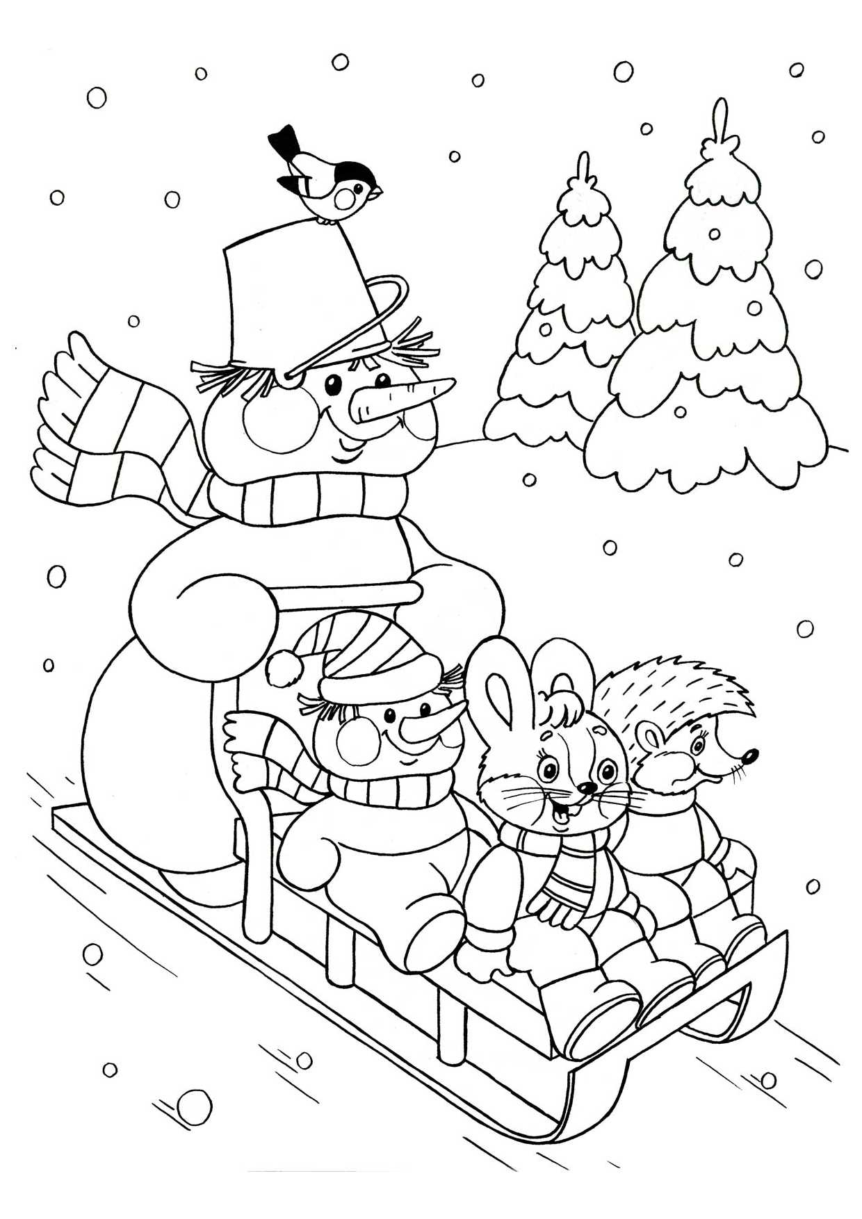 Сюжетные раскраски Снеговик для детей 5-6 лет — 27 бесплатных шаблона