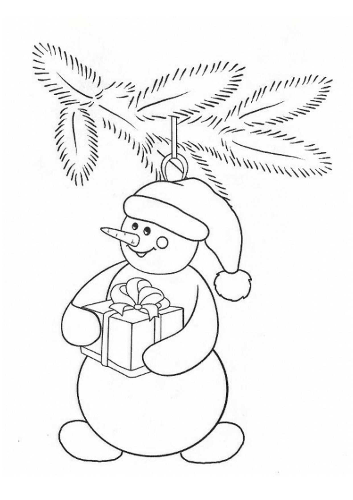 Ветка, шапка, морковка и подарок: минимум работы с цветом, но максимум красоты. Для детей 3-4 лет шаблон в самый раз!