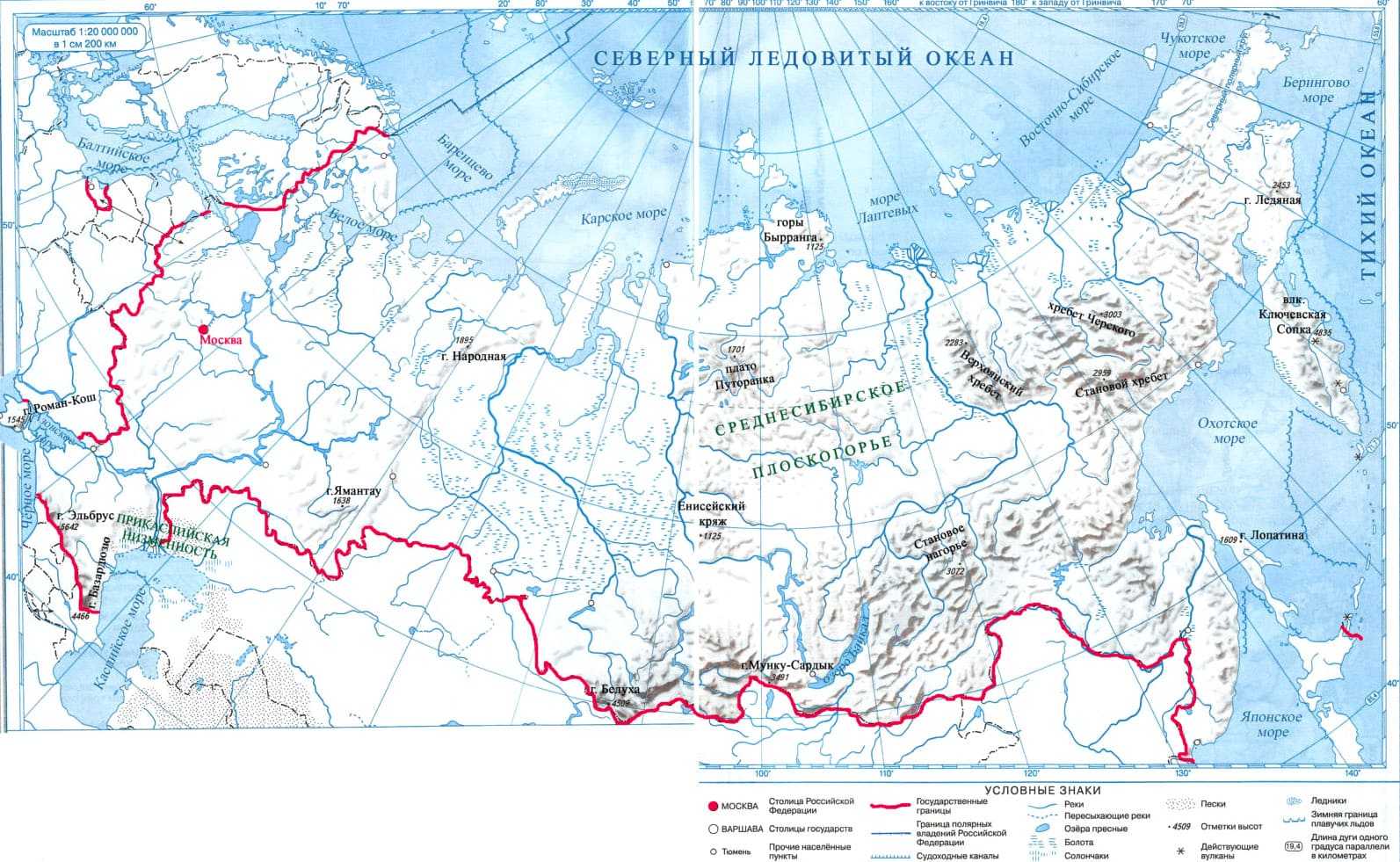 4. Нанесите на карту самые высокие горы России, самую большую низменность и самое большое плоскогорье нашей страны. Какой из этих объектов расположен восточнее других?