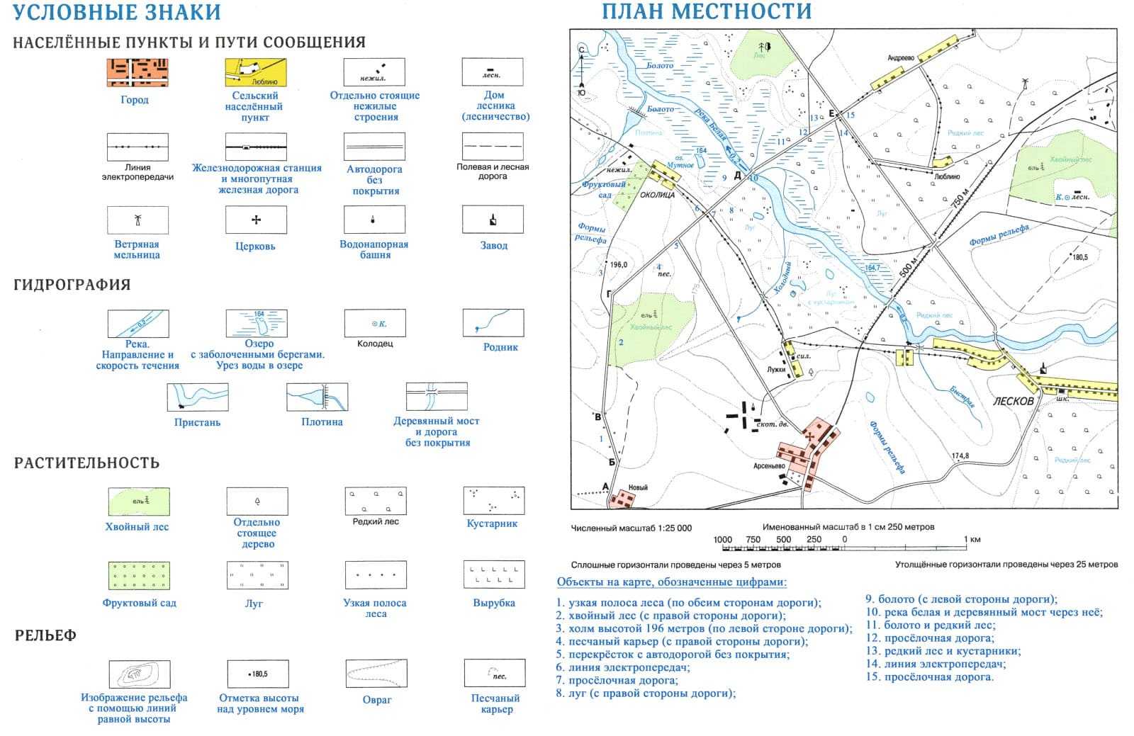 Ответы к страницам контурных карт 12 — 13. Условные знаки. План местности