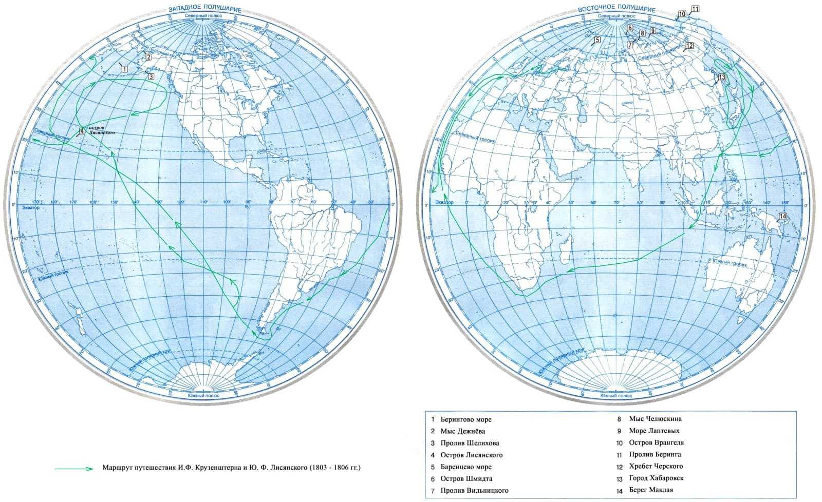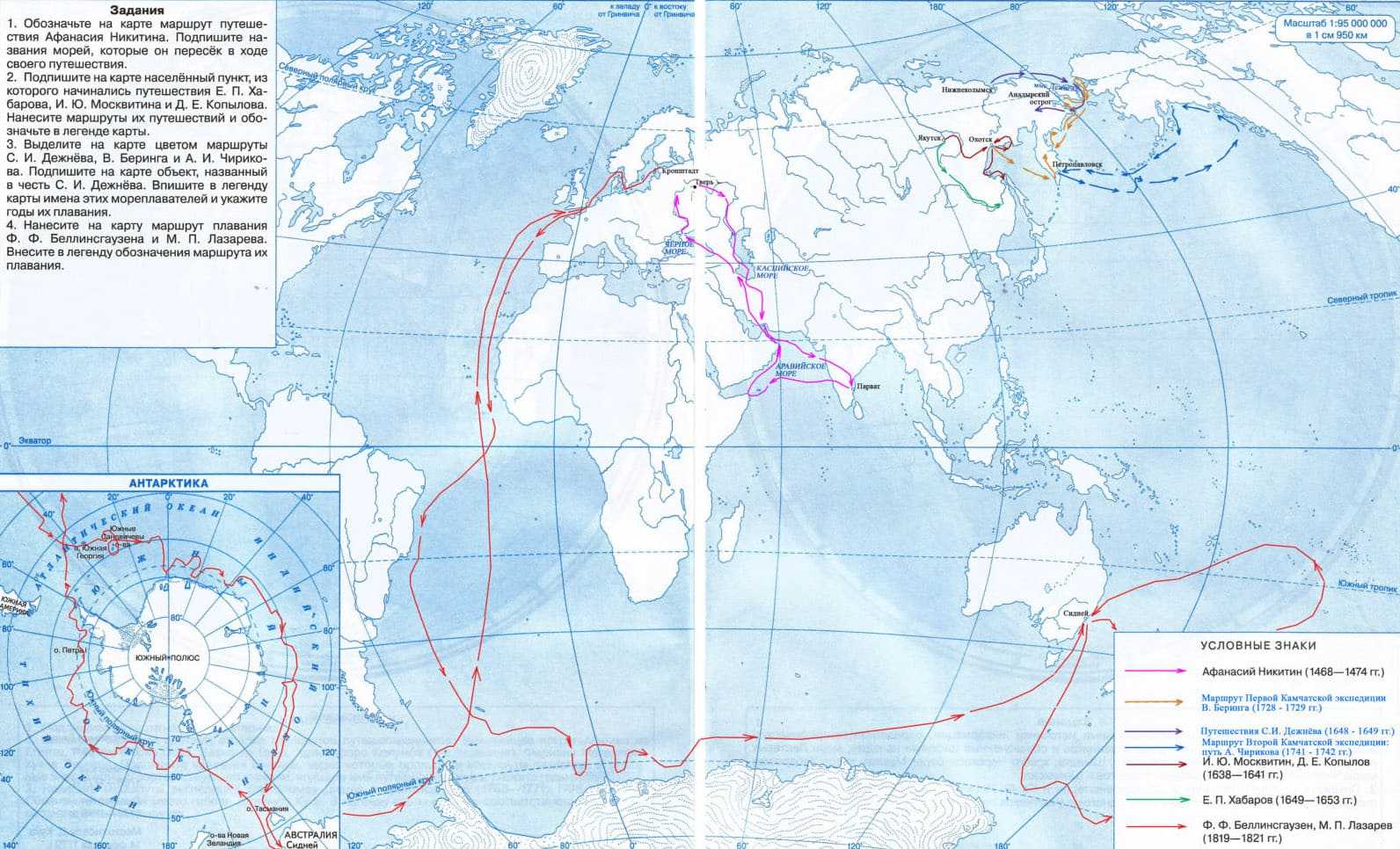 Ответы к страницам контурных карт 6 — 7. Имена русских путешественников на карте мира