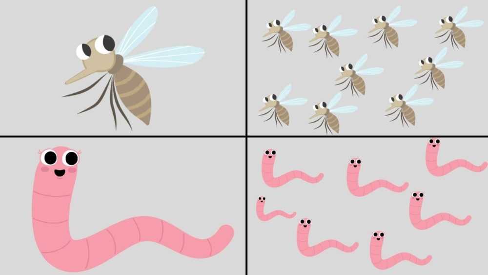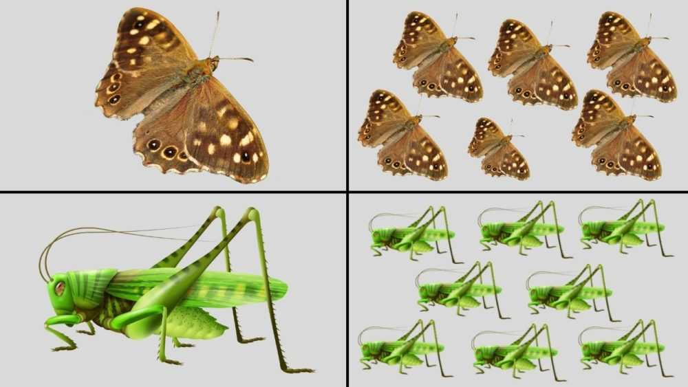 Игра учит образовывать родительный падеж существительных. Педагог называет насекомое, воспитанник предполагает, как будет звучать слово, если представителей фауны много.