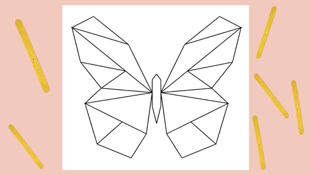 Игра развивает конструктивный навык. Для нее необходимо подготовить счетные палочки. Также можно собрать палочки от мороженого. Также требуется схематическое изображение бабочки, выполненное из линий. Задача дошкольника — сделать из палочек бабочку по предложенной схеме.