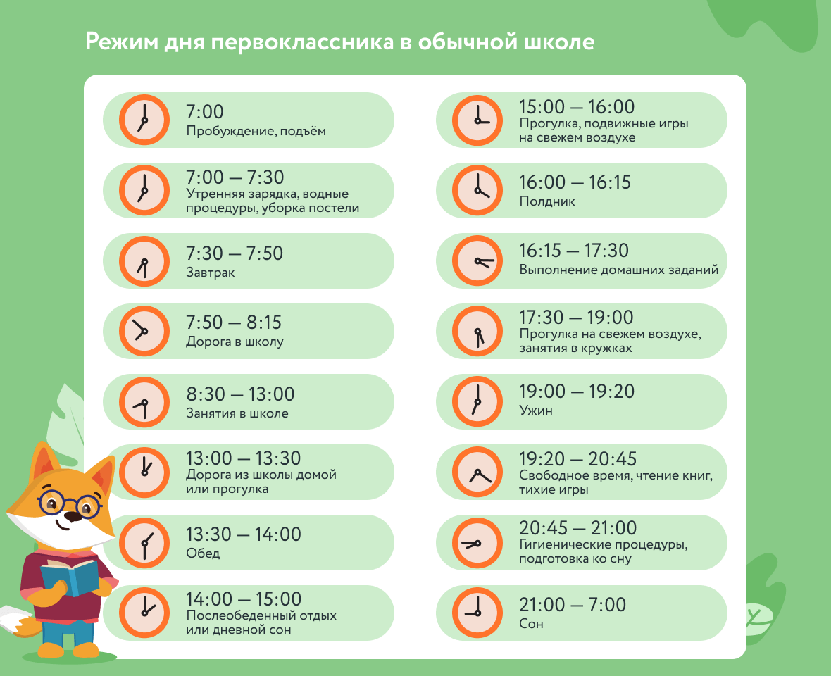Однако есть образец режима дня первоклассника и общие рекомендации, которые помогут родителям выстроить правильный режим дня ребёнка, независимо от формы обучения.