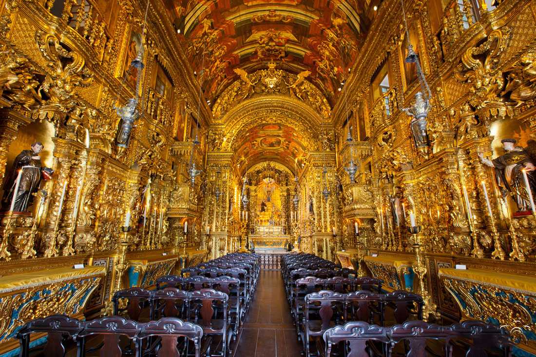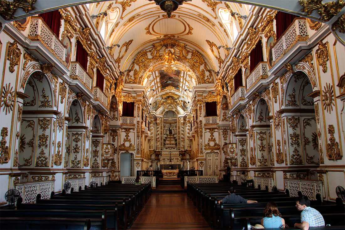 Глядя на довольно простой фасад церкви Третьего Ордена Святого Франциска, трудно поверить, что внутри вы увидите настоящее чудо. Интерьер, который был оформлен в промежуток между 1657 и 1773 годом, представляет собой буйство позолоченной резьбы по дереву.