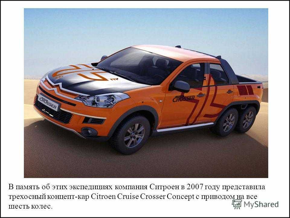 В память об этих экспедициях компания Ситроен в 2007 году представила трехосный концепт-кар Citroen Cruise Crosser Concept с приводом на все шесть колес.