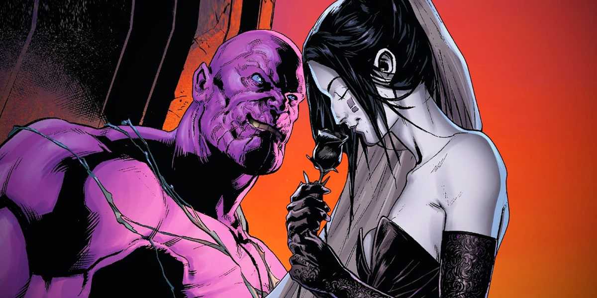 Танос был беспробудно влюблён в неё, но она часто отвергала его попытки или даже игнорировала его существование, что приводило Таноса к новым попыткам заслужить её внимание. Например, с помощью уничтожения вселенной