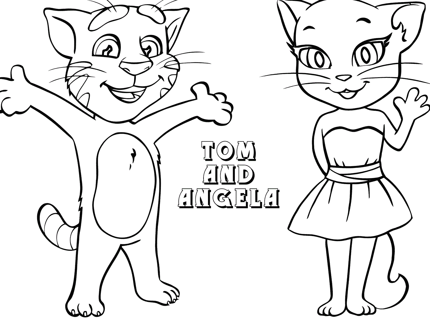 Раскраски Том и Анжела это изображения милых котиков из компьютерной игры для детей. Позабавиться с этими зверьками можно, установив приложение на смартфон или на пк, вряд ли найдется хоть один ребенок, не знакомый с этим развлечением. Если вы заметили, что ваш малыш слишком увлекся виртуальным миром, самое время скачать и распечатать раскраски Том и Анжела и вместе заняться полезной творческой деятельностью.
