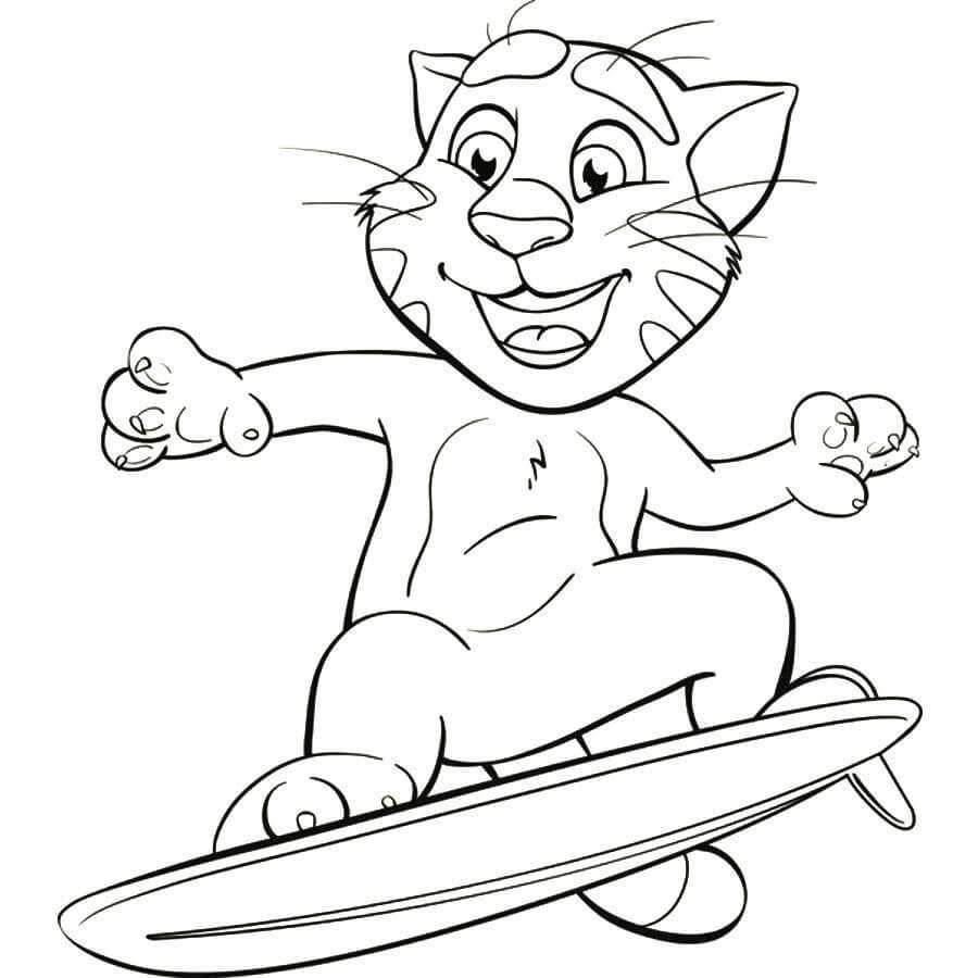 Том на скейтборде катается умело и с азартом. Азартный кот.