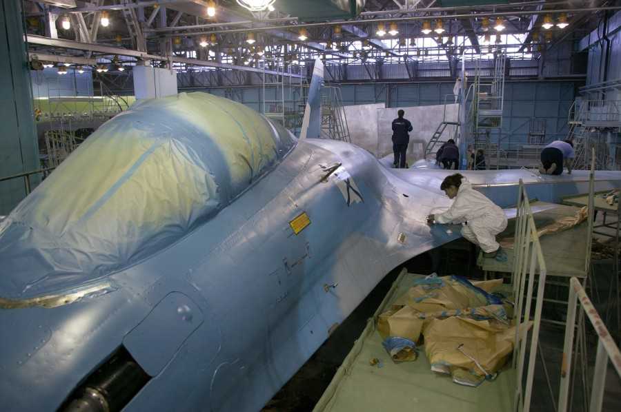 На фото: Окраска самолета Су-33 на Комсомольском-на-Амуре авиационном заводе им. Ю. А. Гагарина