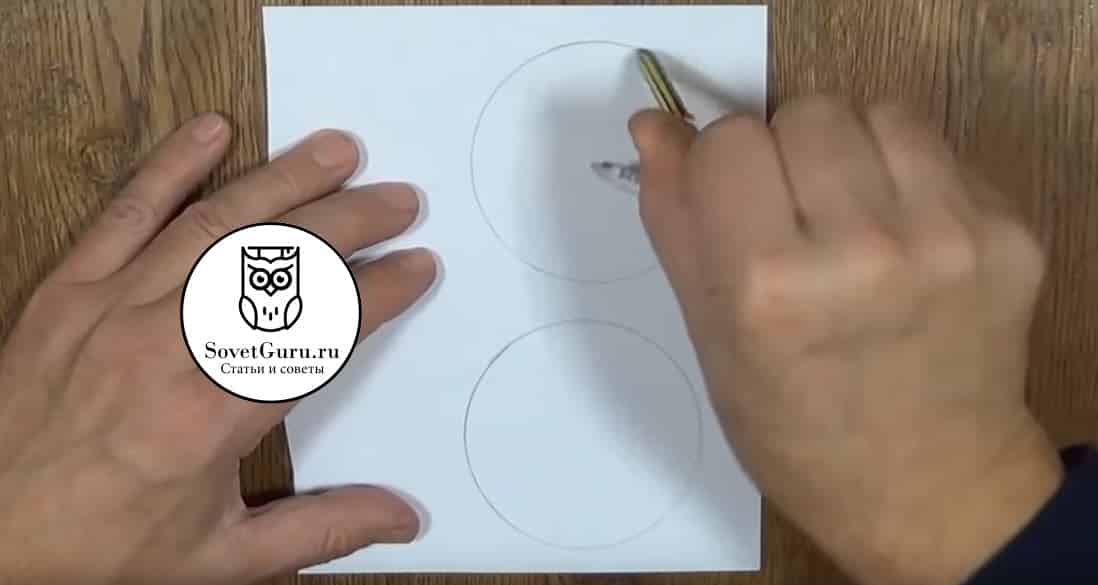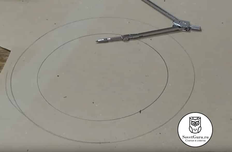 Раскладываем на столе плотный лист бумаги, желательно картон небольшой плотности, и при помощи циркуля рисуем один круг.