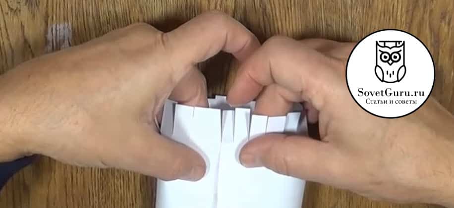 - С обеих сторон сделать двойные складочки, надвигая треугольники на центральную часть.