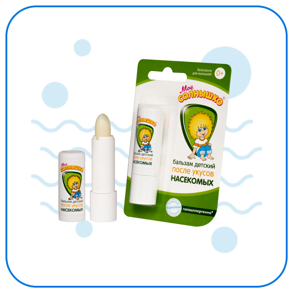 Если всё-таки укусили, и место укуса доставляет дискомфорт, то рекомендуем воспользоваться бальзамом после укусов Моё солнышко . Он разрешен к использованию даже для новорожденных. Это безопасное средство на основе лекарственных трав. Снимает зуд, раздражение и покраснение кожи в месте укуса.