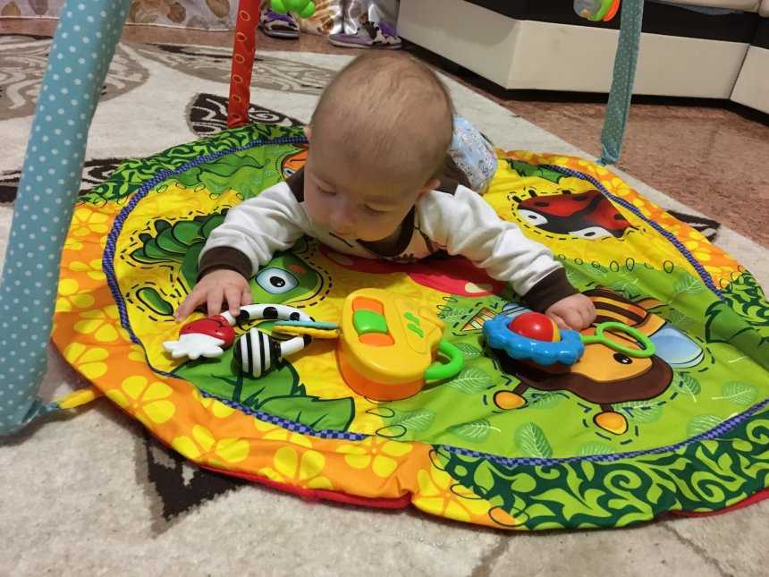 Ещё один достойный внимания вариант – сенсорный коврик. Лёжа на животе малыш может ощущать разные текстуры игрушки и развивает сенсорное восприятие. Яркие цвета коврика тоже помогают развиваться системе зрения.