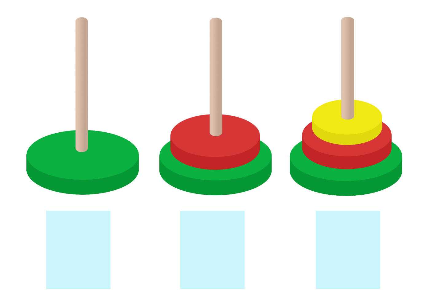 Пирамидки с колечками одинакового размера. Задача такой игрушки – обучение ребенка нанизыванию колечек на стержень и снятию их со стержня. Это самое простое действие с пирамидкой.