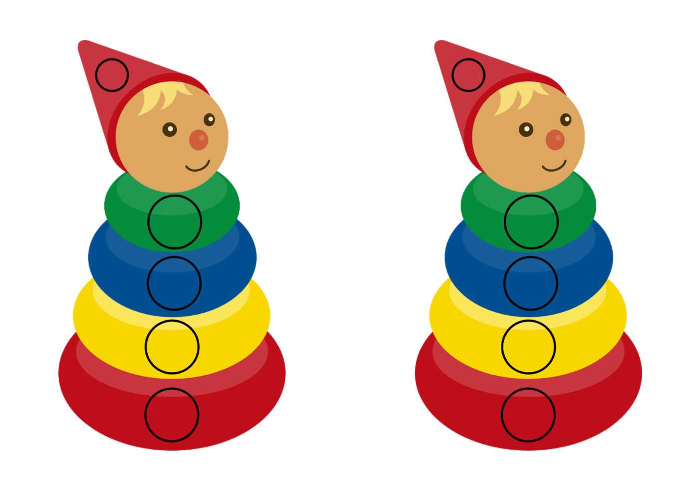 Важно, чтобы разница в размере маленьких и больших колец была не менее 3 см. Пирамидка может быть и одноцветной, и разноцветной