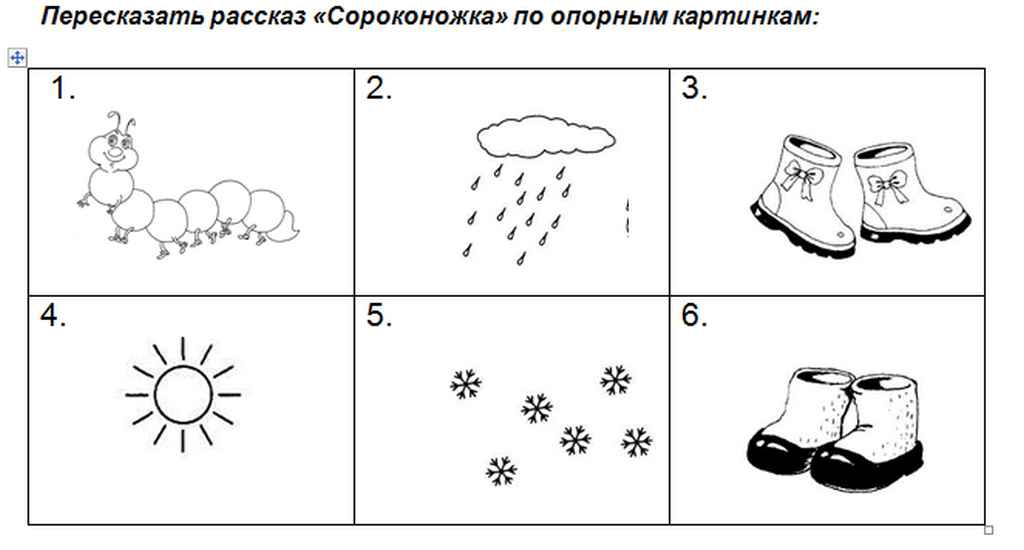 - Пересказать рассказ «Сороконожка» по опорным картинкам: