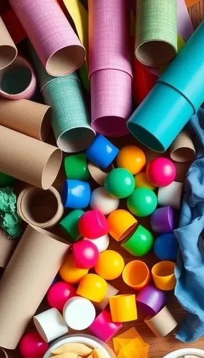 Другие бытовые предметы: Старые носки можно превратить в кукол, а коробки из-под яиц – в основу для аппликаций. Рулоны от туалетной бумаги или бумажных полотенец могут стать телескопами или строительными блоками.